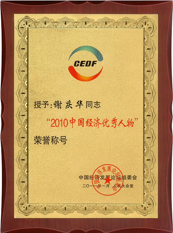謝慶華總經(jīng)理榮獲“2010中國(guó)經(jīng)濟(jì)優(yōu)秀人物”稱號(hào)