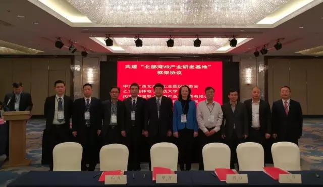 2017年1月8日,在深圳召開的“廣西電子信息產(chǎn)業(yè)桂電校友招商引資懇談會”上,在自治區(qū)工信委徐莉青副主任、北海市委常委、副市長曾子祥,桂林電子科技大學(xué)校長古天龍等領(lǐng)導(dǎo)見證下,桂林電子科技大學(xué)、北海工業(yè)園區(qū)管委會、中國電子北海產(chǎn)業(yè)園公司與北京幻鯨數(shù)字科技有限公司簽署合作協(xié)議,建設(shè)北部灣VR產(chǎn)業(yè)研發(fā)基地,標(biāo)志著中國電子北部灣信息港軟件研發(fā)版塊進(jìn)入新的發(fā)展階段。